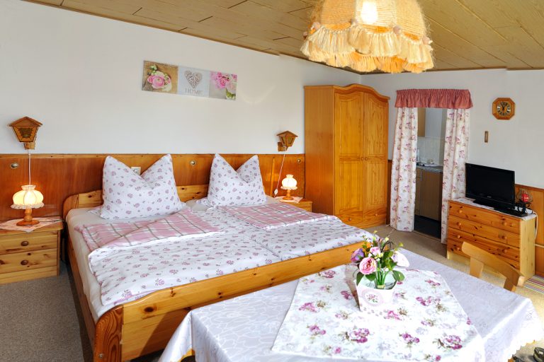 Wohn-/Schlafzimmer, Küche mit zwei Kochmöglichkeiten, Kühlschrank, Gefrierfach, Spüle, Kaffeemaschine, Toaster, Wasserkocher, komplettes Geschirr, Putz- und Reinigungsmittel, Dusche/WC, Toilettenpapier, TV, Radio, Heizung, kostenlose Fahrrad- und Motorradgarage, komplettes Prospektmaterial über die Region sowie Wanderkarten