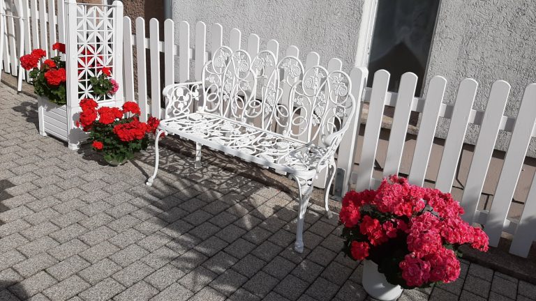 Zur Wohnung gehört eine Sitzecke im Garten mit Grillmöglichkeit. Gartentor auf - Wanderung oder Spaziergang kann beginnen.